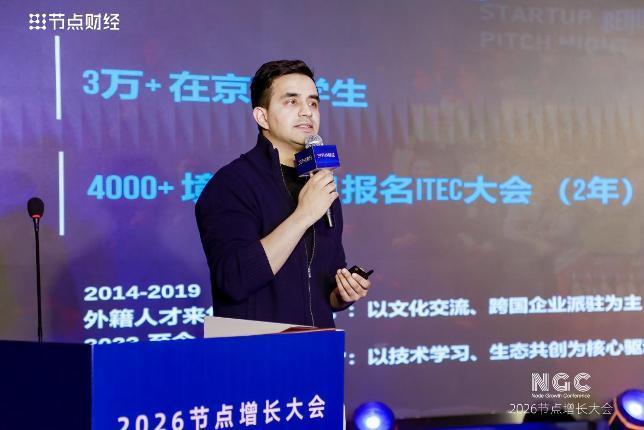 2026节点增长大会上,北京无限港创始人马赫先生分享了全球人才流向北京的新趋势。